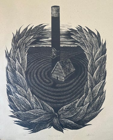 Marcel Molina was born in the city of Cienfuegos, in central Cuba. He draws inspiration from a region historically linked to the sugar industry, once the country’s main economic crop. With exquisite detail and technical mastery, his work brings viewers closer to the history of sugar production and its most important symbols. He has exhibited extensively throughout Cuba, Europe, and the United States. In 2013, he received the Belkis Ayón Award in Cienfuegos for his mastery of woodblock printing and was later awarded the National Engraving Award of Cuba